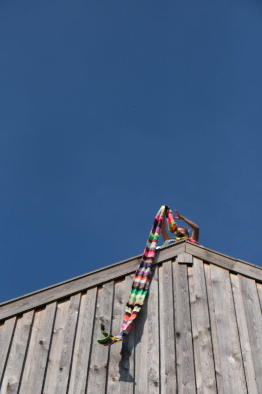 täglich widme ich mich meinem lebensschal. ich suche je nach gefühlslage eine wolle aus und überlege mir ein passendes strickmuster. mein schal wächst, als ein lebendiges tagebuch, das unaufhörlich an länge gewinnt. nach zwei jahren ist er 22 meter lang und zeigt sich in den unterschiedlichsten formen und farben.